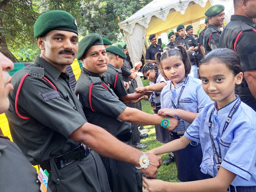 On the occasion of Raksha Bandhan, students of Meerut Public School, Pallavpuram , visited 13 Garhwal Rifles unit on Thursday, August 7th , 2025 to tie rakhi to the Nation Defenders and extended a token of gratitude. The emotional interaction fostered patriotism and gave students insight into army life, strengthening their bond with the nation’s protectors. The initiative stands as a sterling example of youth engagement with India’s armed forces, fostering mutual respect, community connection, and patriotic spirit.