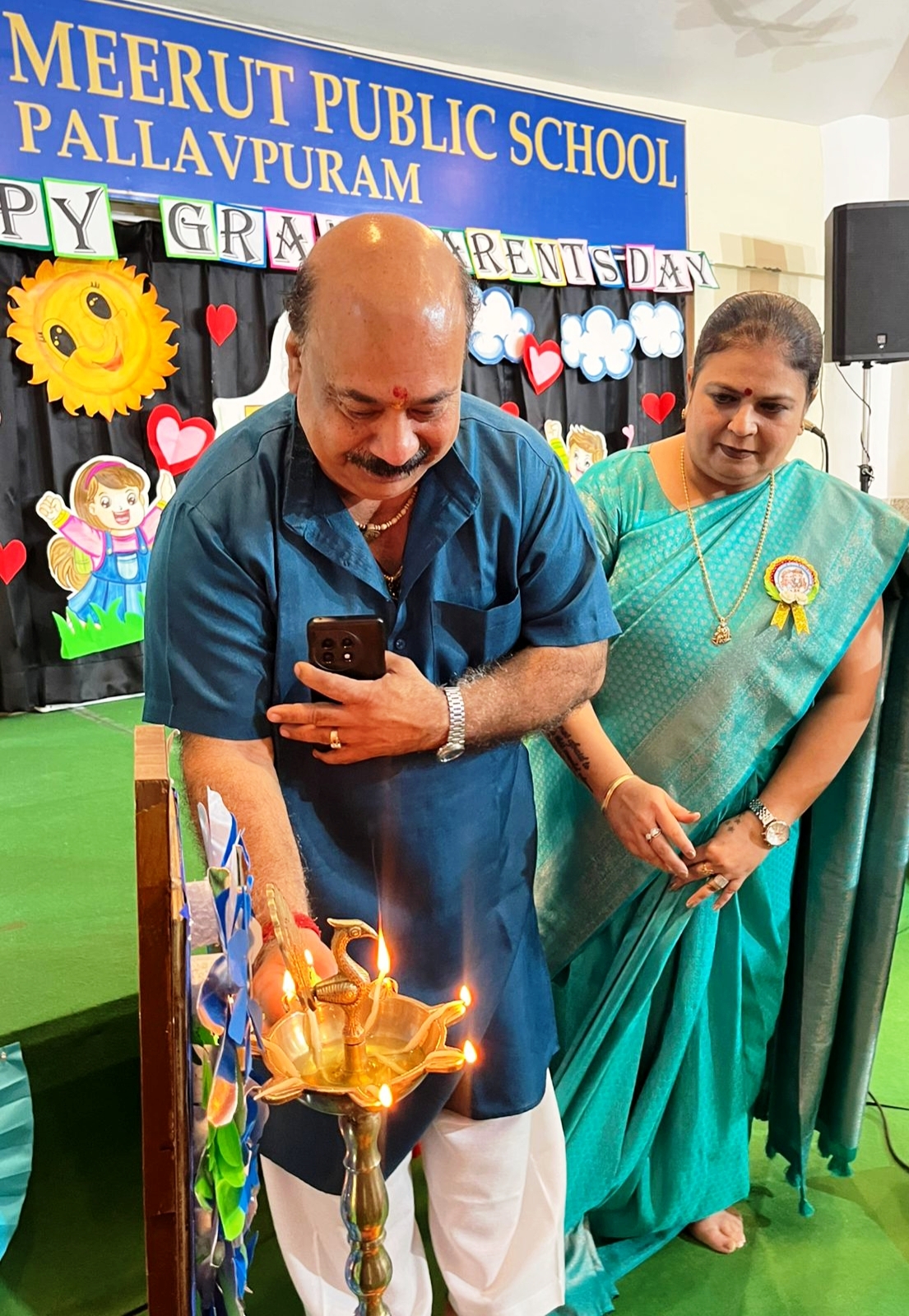 Meerut Public School, Pallavpuram celebrated Grandparents’ Day on Friday, September 12, 2025, with great enthusiasm and warmth. The event began with the auspicious lighting of the lamp, followed by a melodious musical performance by Taal Tarang and a graceful dance by Nritya Kunj that added charm to the celebration.
