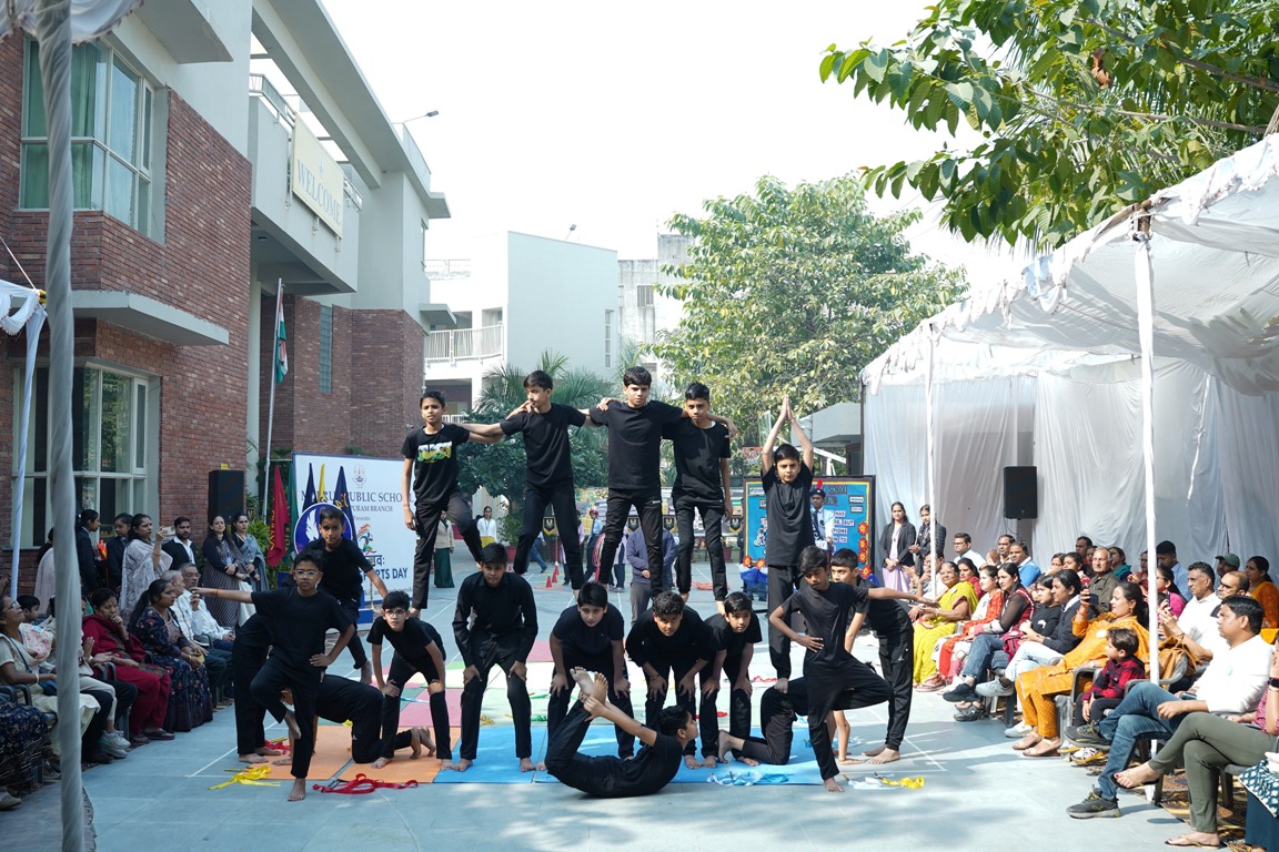 The celebration unfolded with a melodious welcome song presented by the school choir, followed by a March Past that exemplified discipline, coordination, and team spirit of the students. The spectators were then treated to an array of spectacular displays — including Yoga postures, Karate sequences, Skating demonstrations, Dumbbell Drill, and a Pyramid formation — each reflecting the students' skill, focus, and dedication.