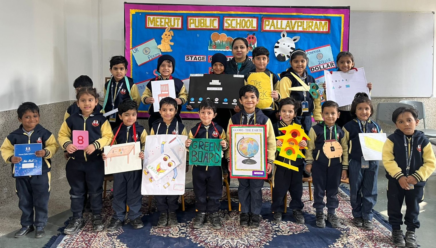 Meerut Public School, Pallavpuram conducted an engaging stage presentation for the Foundational Stage (Balvatika I to Grade II), covering a variety of age-appropriate topics like  World Currency, Animal Families, Classroom Objects, Sense Organs, and States of India. The event was a joyful blend of learning, fun, and self-expression.